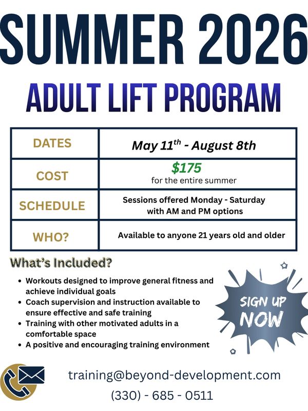 This program offers a positive and encouraging training environment for motivated adults looking to improve general fitness and work towards individual goals. Must be 21+ to join the program!